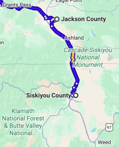 Jackson and Siskiyou Counties are right across the California-Oregon border from one another.